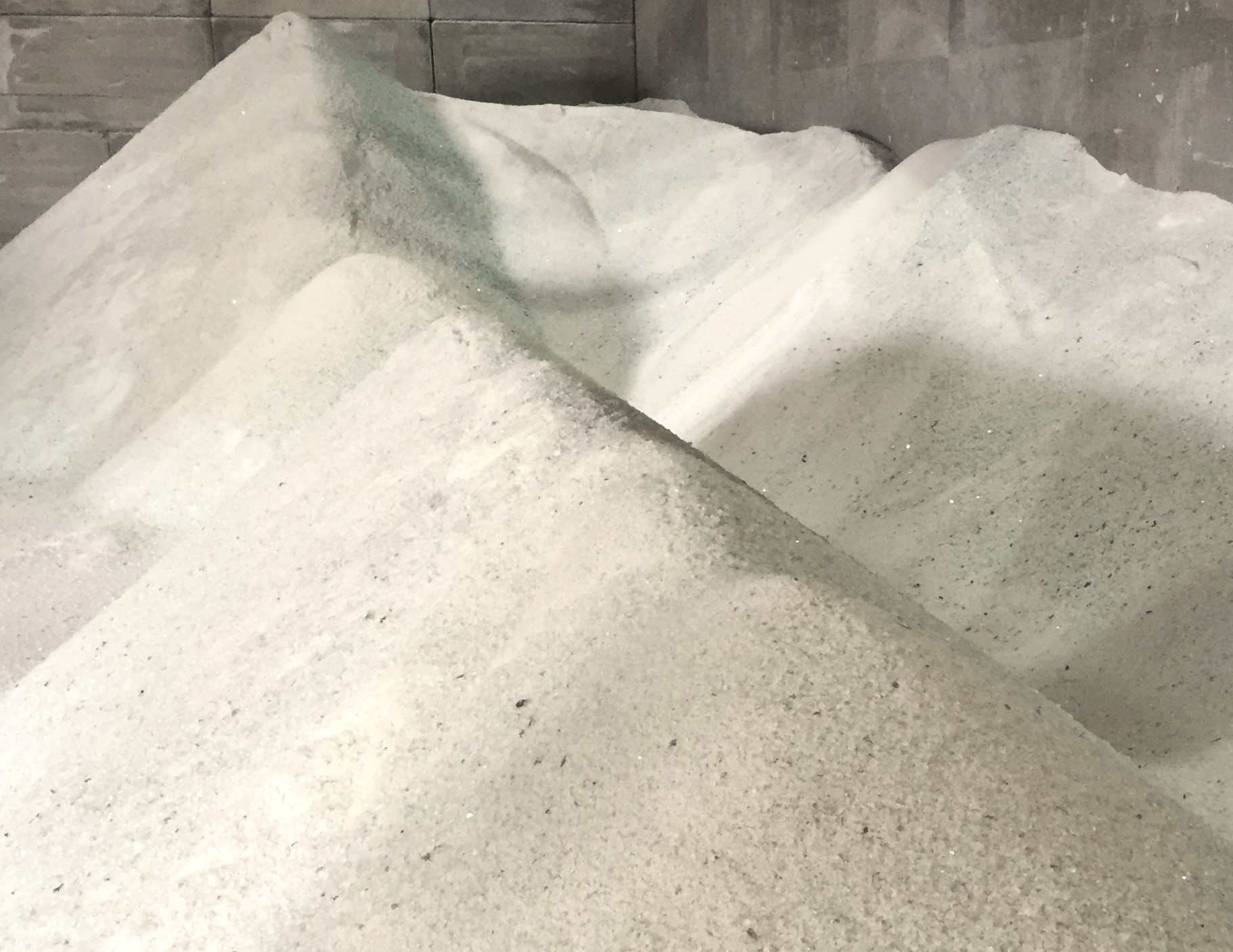 Nedknust glass fra kasserte isolerglassruter – en attraktiv råvare.