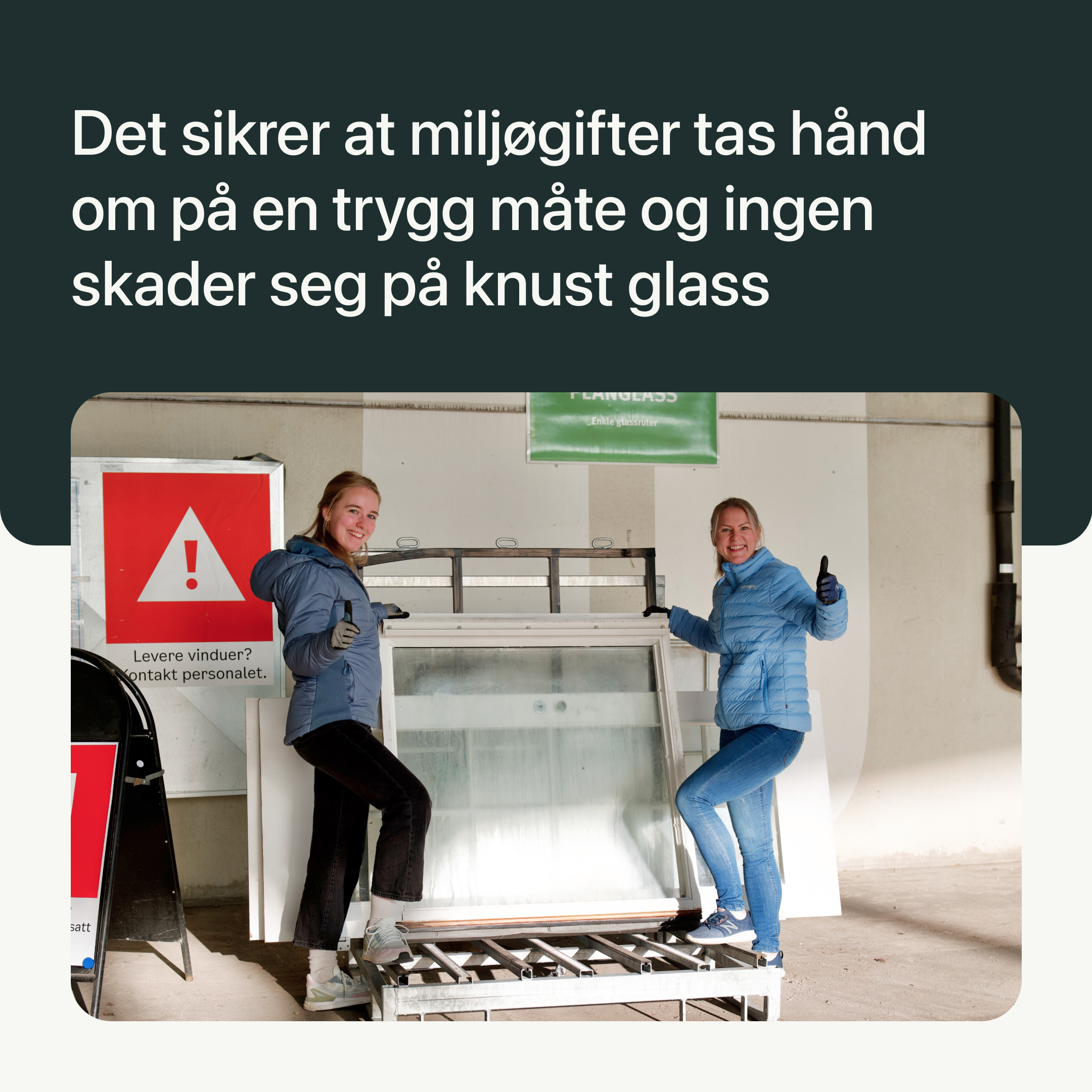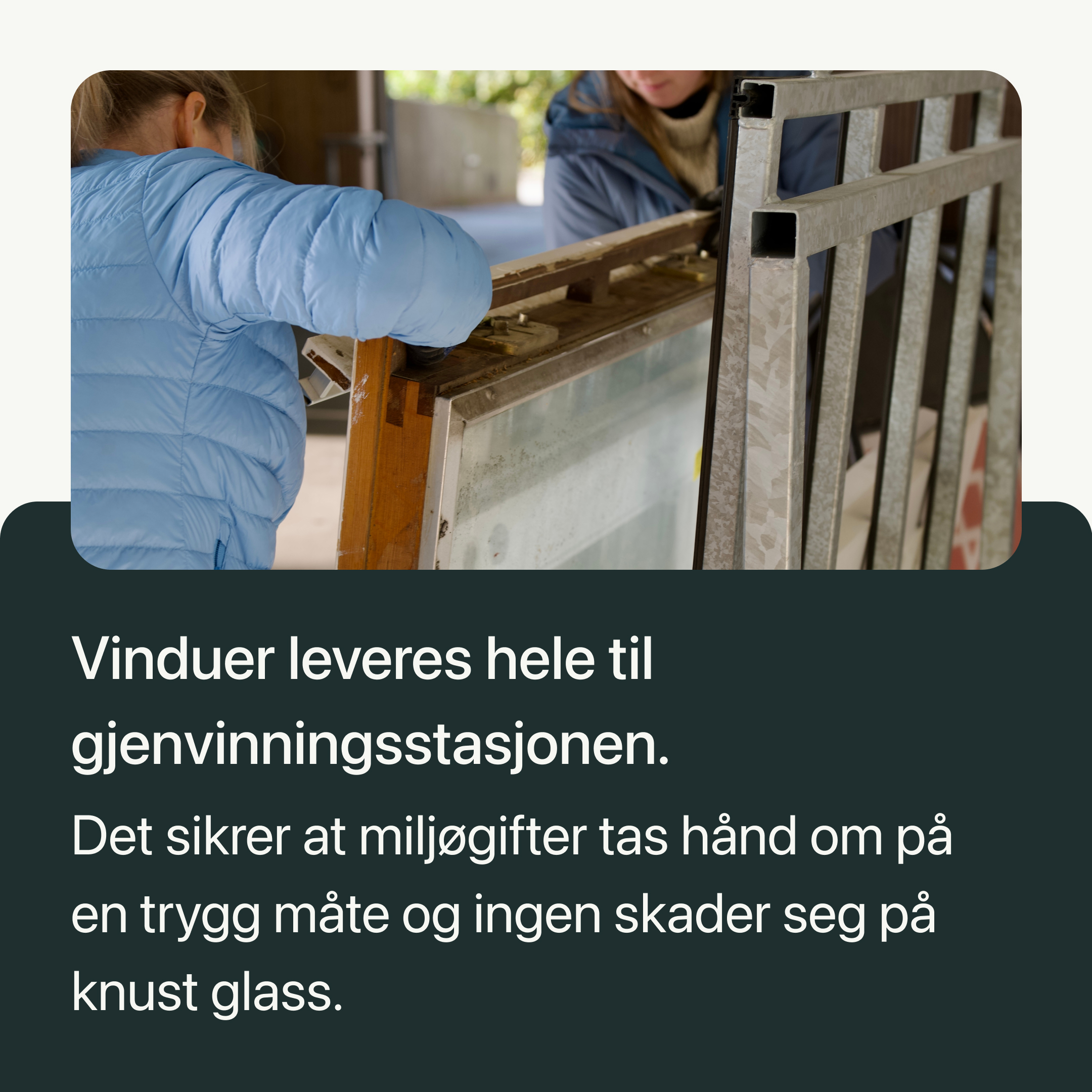 Målgruppen er avfallsmottakets abonnenter og kunder. Formålet er å sikre trygg håndtering og informere om kasserte vinduer og ruter, også det som ikke er PCB-ruter.